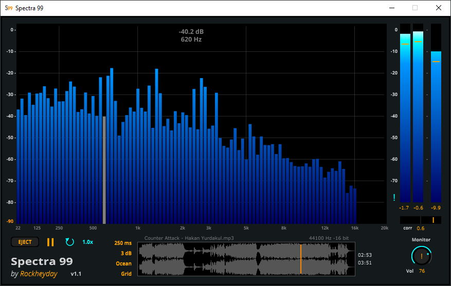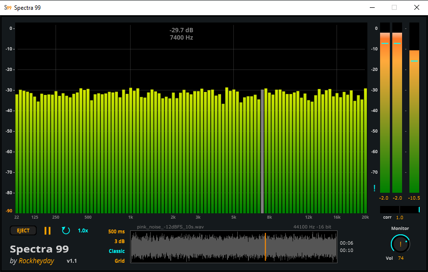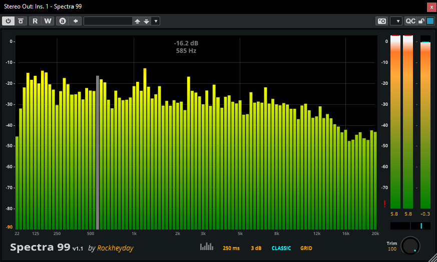 SPECTRA 99 is designed for modern high-definition audio workflows and is fully optimized for sample rates up to 96 kHz, delivering precise and stable spectral analysis in both standard and high-resolution sessions. The standalone application operates at 44.1 kHz and above, while the VST3 plugin follows the host DAW’s sample rate.